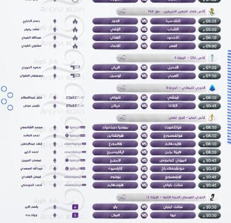 📃جدول مباريات اليوم ، الثلاثاء 28 أكتوبر 2025