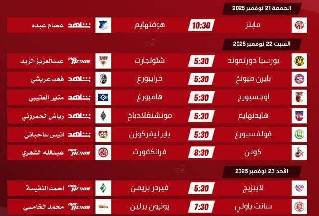 ⚽️الدوري الألماني ، مباريات الجولة 11 ⚽️