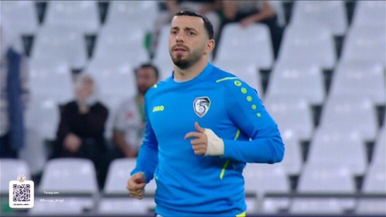 📸🇸🇾 | عُمر خريبين خلال إجراء عمليات الإحماء قبل مواجهة فلسطين.