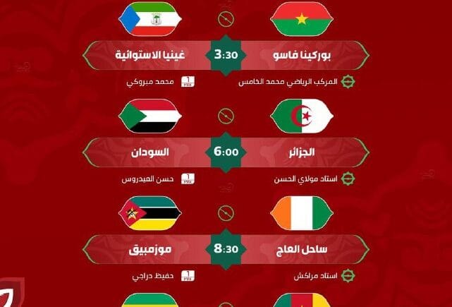 • 23 ديسمبر ، اليوم الثالث ، دور المجموعات ، كأس أمم إفريقيا 2025 توتال إنرجيز.