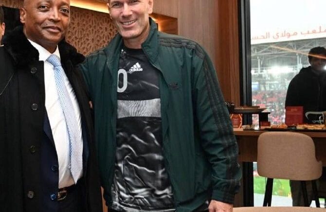 رئيس الاتحاد الإفريقي لكرة القدم باتريس موتسيبي، رفقة الأسطورة زين الدين زيدان.