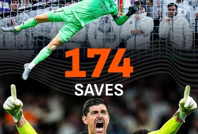 بـ 174 تصدّي ، تيبو كورتوا هو اكثر حارس تصديًا للكرات في 2025 في الدوريات الخمس الكُبرى.